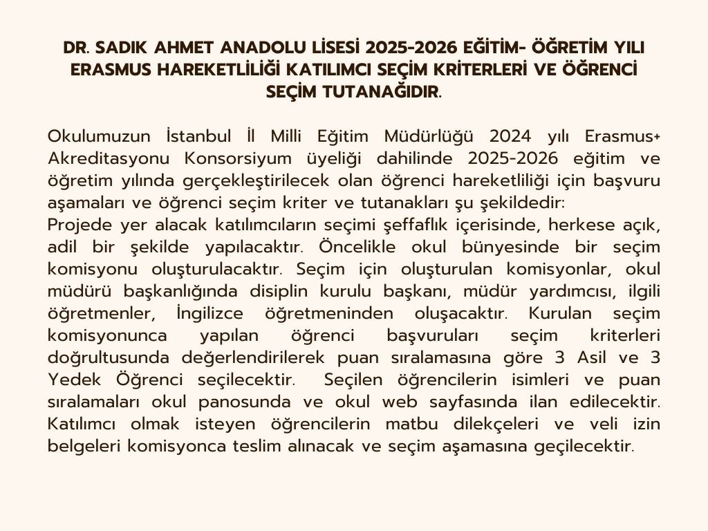 İSTANBUL / KAĞITHANE - Dr. Sadık Ahmet Anadolu Lisesi