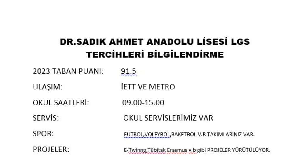 İSTANBUL / KAĞITHANE - Dr. Sadık Ahmet Anadolu Lisesi